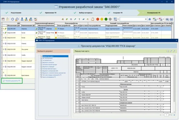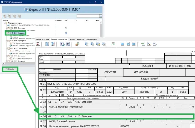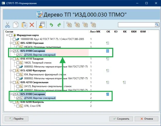 - Из выделенной строки дерева ТП можно перейти в Маршрутную карту.