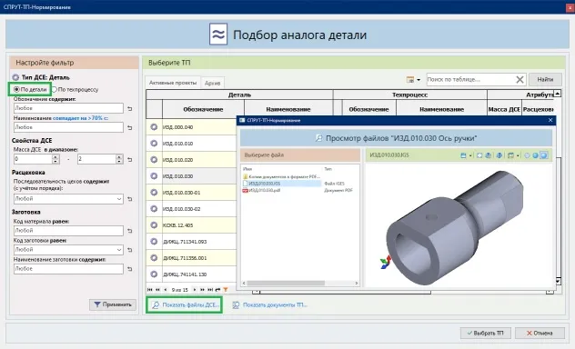Просмотр файлов, привязанных к ДСЕ