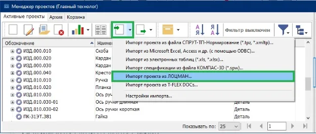 - «Вставка техпроцесса из Менеджера проектов»