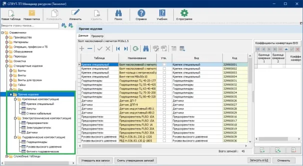 - Настройка проверки кодов стандартных изделий и оснастки. Появилась возможность настраивать проверку кодов из Менеджера ресурсов для стандартных изделий, прочих изделий и оснастки.