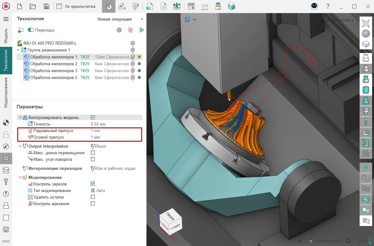 В операцию «Обработка крыльчаток» добавили раздельный припуск: осевой и радиальный. Поддерживаются отрицательные значения.
