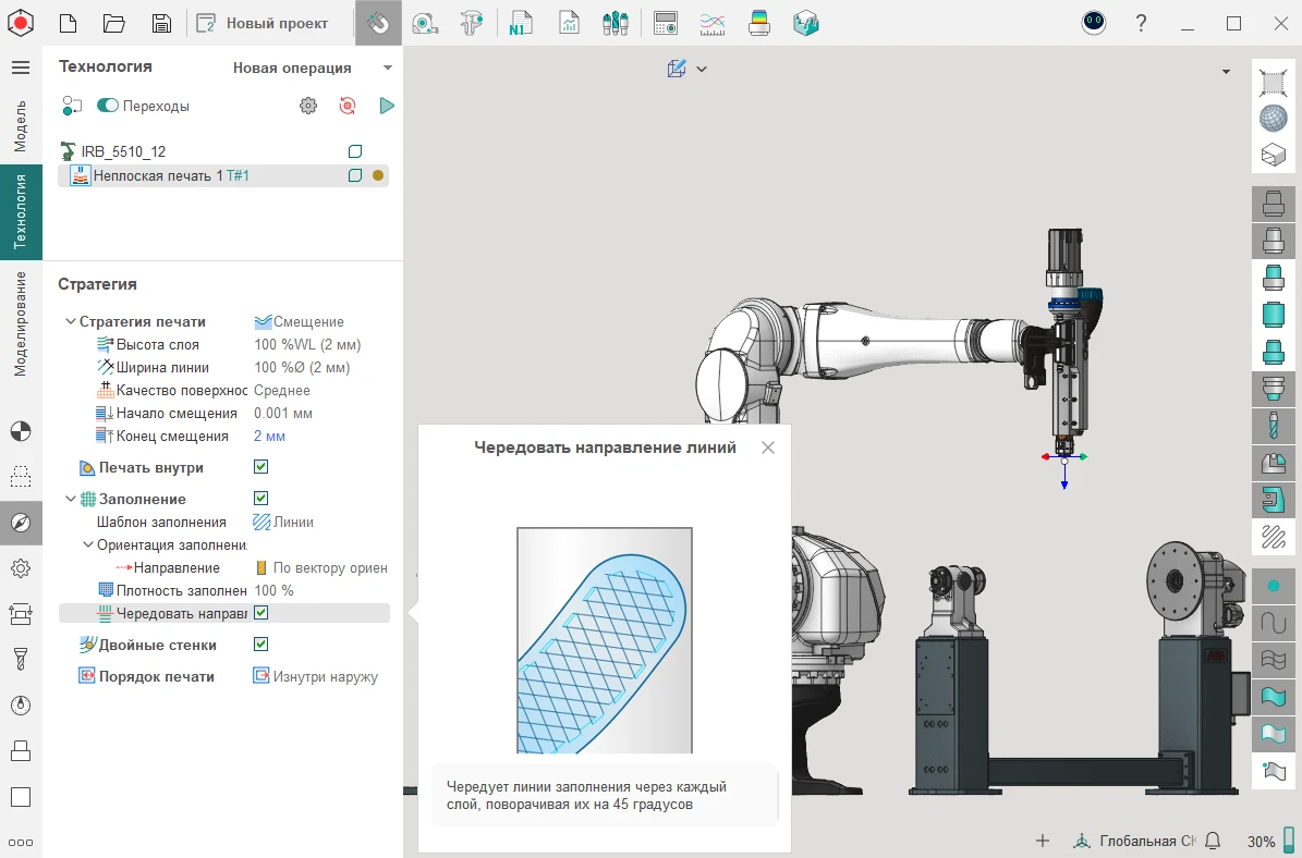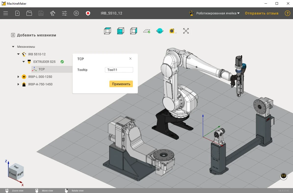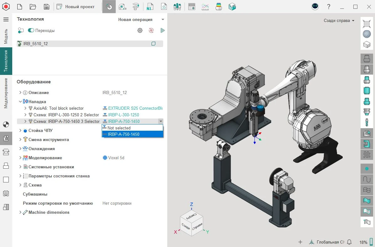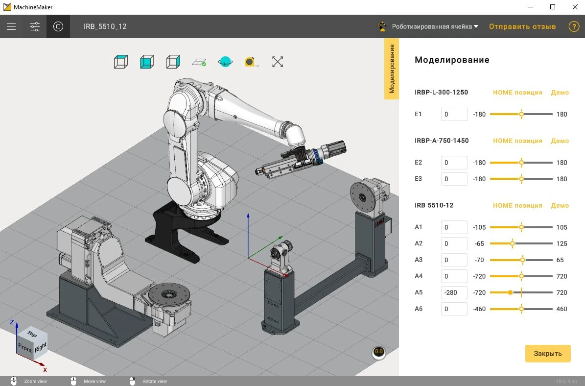 Добавили поддержку роботов типа ABB IRB5510/12. Особенностью робота является кинематика 5 оси.