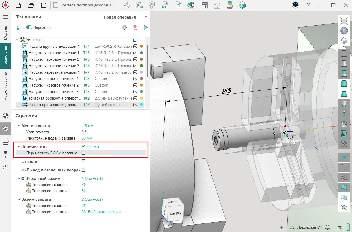 - Исправили ошибку для операции «Токарный перехват», когда появлялись лишние движения противошпинделя