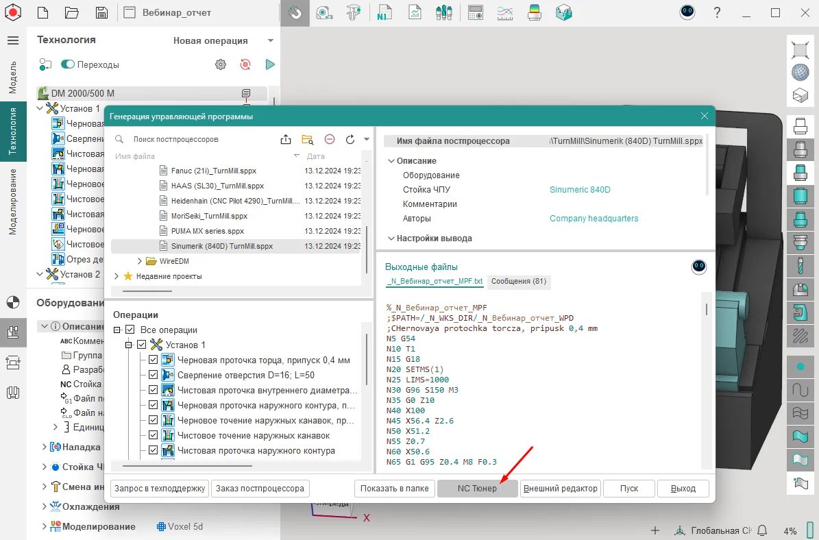Добавили возможность открыть текст управляющей программы сразу в NC Тюнер из окна генерации управляющих программ в спруткаме
