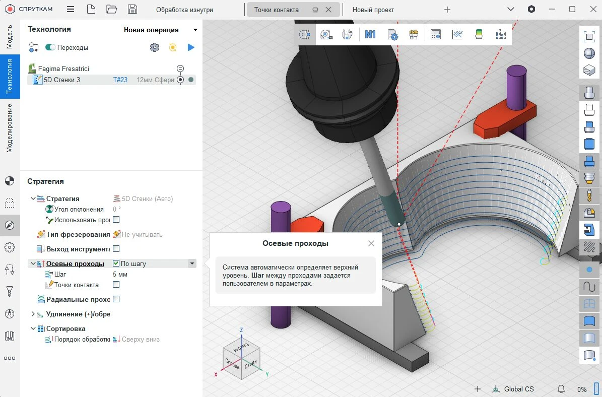- Исправили ошибку для операции 6D Контур: добавили возможность задать Направляющую поверхность в рабочем задании