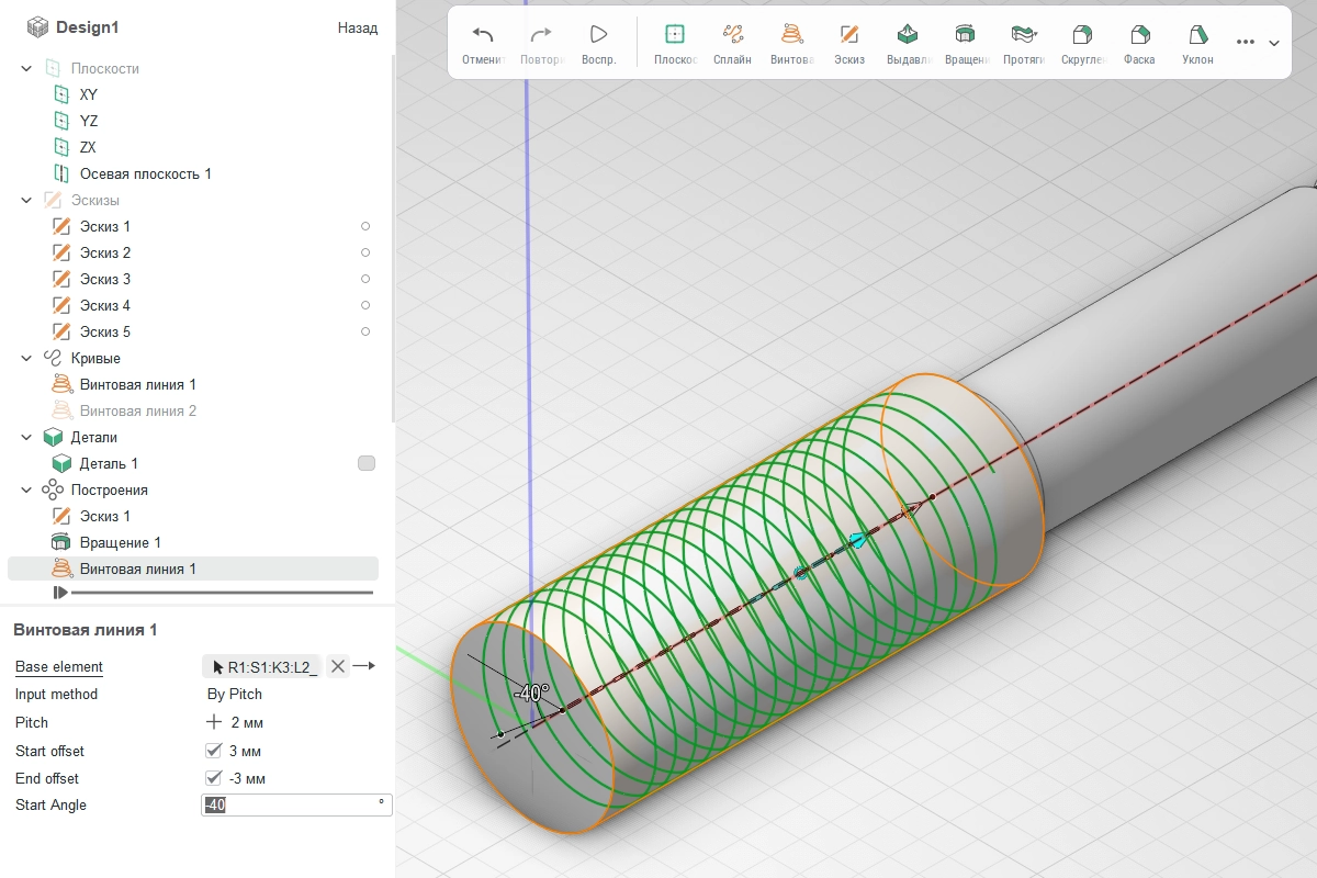 Обновили функционал винтовой линии в CAD модуле