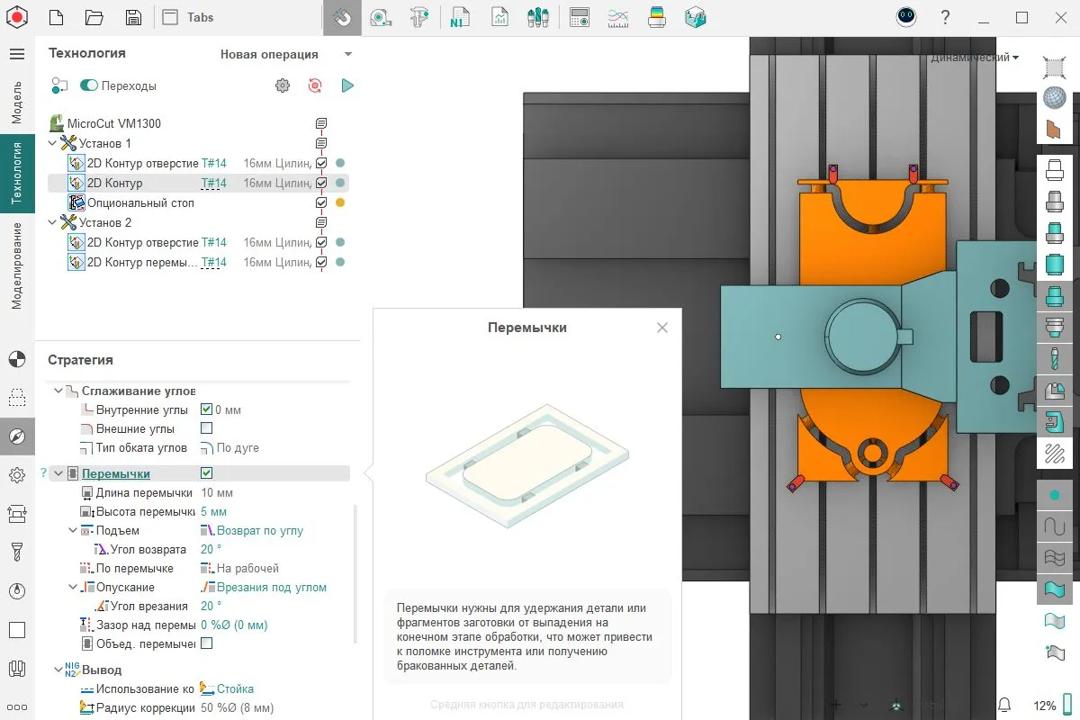 Добавили новую опцию Перемычки для операций 2D, 2.5D, 3D Контур.